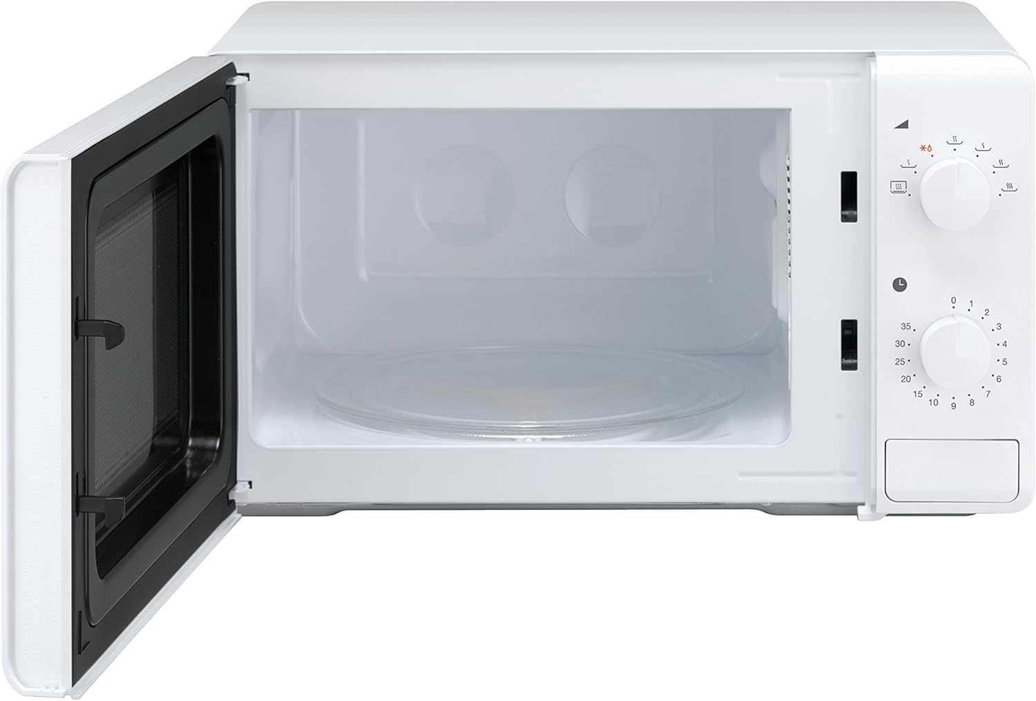 The Daewoo KOR6M17 20Litre 700W Manual Microwave Oven in white, is designed to be easy to operate with dial and it features 7 Power Levels, a 35 minute timer and a push button door open mechanism. All in all, User-friendly and simple for everyday use. For special Recessed turntable, the glass tray is located with sufficient space in the cooking chamber so you could have bigger plate which means easily put in and take out food.