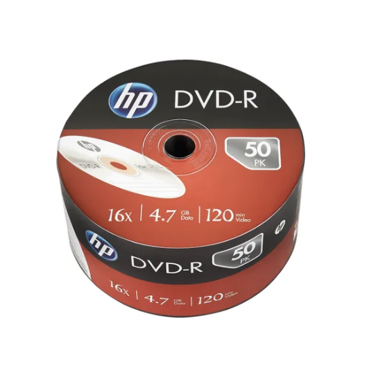This pack of HP DVDs are perfect for burning videos or simply storing pictures and data. They are DVD-R format and have 16x write speed, with a storage capacity of 4.7GB- or around 120 minutes of video data. These non-rewritable DVDs are exceptional quality and supplied in a pack of 50 discs.