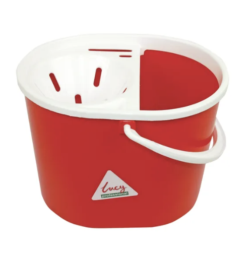 This extra tough Lucy Oval Mop Bucket has a durable polypropylene construction designed for frequent use. The bucket comes with a convenient clip on/off wringer and a durable handle for easy transportation. Designed for general use, this red 15 litre mop bucket can be used as part of a colour coordinated cleaning system to avoid cross-contamination.