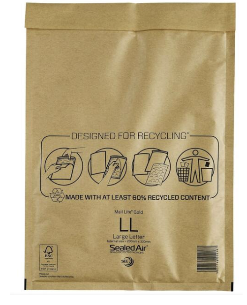 Mail Lite Sealed Air Size LL Padded Envelopes Box of 50 – Gold C4