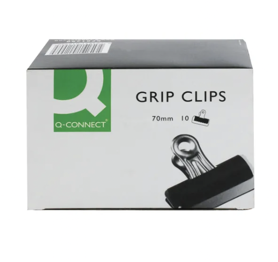 These Q-Connect grip clips provide a simple and effective way to secure loose papers for filing, storage and organisation. The strong metal construction is long lasting and suitable for heavy duty use. This pack contains ten 70mm grip clips.